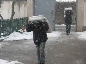 The situation was exacerbated by the cold winter, with temperatures reaching -20 degrees Celsius. Dushanbe residents reported wearing several jackets and overcoats to sleep and all family members sleeping under a single blanket to share warmth.[2] The UN's World Food Programme also declared the food situation as being in emergency shortage, in both cities and rural areas.[7]