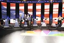 The first Democratic debate was in the evening of April 26, 2007, in Orangeburg, South Carolina, at South Carolina State University. State party chairman Joe Erwin said that he chose South Carolina State because it is a historically black college, noting that African-Americans have been the "most loyal" Democrats in the state.[9] The debate was 90 minutes, with a 60-second time limit for answers, and no opening or closing statements.[10] It was broadcast via cable television and online video streaming by MSNBC.[11] The debate was moderated by Brian Williams of NBC Nightly News.