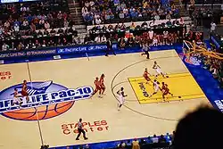 The 2008 Pacific Life Pacific-10 Conference Men's Basketball Tournament was held between March 12 and March 15, 2008 at Staples Center in Los Angeles. All ten schools in the conference qualified for the tournament. Number one seed UCLA defeated number two seed Stanford 67–64 to win the conference tournament. It was the first time since 2005 that the top two seeded teams were in the final game. UCLA was the regular season champion. A record crowd of 18,997 (Staples Center capacity for Basketball) was on hand to watch UCLA defeat USC 57–54 in the semi finals.[2] On January 3, 2010, USC Athletic Director Mike Garrett announced that the school was to vacate the 2007–08 season's victories for NCAA violations by the basketball team.[3]