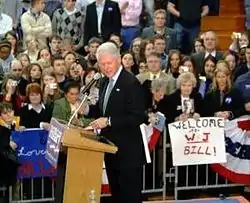 Former President Bill Clinton highlighted the importance of the state for the Clinton campaign saying on March 11 at an event in Western Pennsylvania that "If she wins a big, big victory in Pennsylvania, I think it'll give her a real big boost going into the next primaries ... I think she's got to win a big victory in Pennsylvania. I think if she does, she can be nominated, but it's up to you."[9] This was a repetition of his tactic before March 4, warning supporters that his wife might not be able to continue if she did not win Ohio and Texas.[10] Hillary Clinton emphasized that Pennsylvania was something of a home state for her, as her father came from Scranton, Pennsylvania, she and her brothers were christened there and had vacationed near there each summer, and her brothers still maintained the family cottage near there.[11]