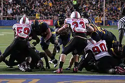 The victory, which placed Cal into the top 10, was only the second win in the last ten road games, snapping a four-game losing streak of road contests. Best, who rushed for 131 yards, set a modern school record and a career-high with five rushing touchdowns.[12][13] Kevin Riley threw for 252 yards, while the Bear defense held the Gophers to 37 yards rushing. Gophers quarterback Adam Weber threw for 226 yards and two touchdowns, including three interceptions.[11] The Bears' leading receiver in 2008, Nyan Boateng, broke his foot during the first half of the game and is expected to miss four to six weeks.[14]
