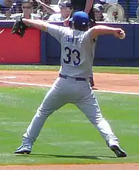 The Dodgers were active in trades at the July 31 deadline. To reinforce the starting rotation, the Dodgers on July 31 acquired starter Ted Lilly from the Chicago Cubs, along with infielder Ryan Theriot, in exchange for Blake DeWitt and two minor-league pitchers (Brett Wallach and Kyle Smit).[154] The Dodgers also added to the bullpen by acquiring closer Octavio Dotel from the Pittsburgh Pirates in exchange for James McDonald and minor league outfielder Andrew Lambo.[155]
