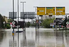 The 2010 Slovenia floods, on the weekend of 17–19 September 2010, were caused by heavy rains in Slovenia, resulting in one of the worst floods in the country's history. Among the regions affected were the capital Ljubljana, the Central Sava Valley, Laško, the Slovene Littoral and Lower Carniola.[3][4] Initial damage was estimated to reach €15 million.[5] Three people died.[1][2]