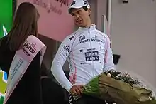 In stage 11, the Giro's longest, more than 50 riders formed the day's breakaway. This group attained a maximum advantage of 20 minutes, paving the way for significant changes to the overall standings. Chris Sørensen, Didier, and Porte, who had risen to sixth overall, all made the selection. Team Saxo Bank helped to drive the break, since Porte as the highest placed rider stood to take the pink jersey should they stay away. Porte finished 13th on the stage, but was 12 and a half minutes clear of the peloton, becoming the new race leader with the result.[11] Porte held the pink jersey for two days, through stages won by breakaways, before losing it to David Arroyo in the Monte Grappa stage.[12] The squad was then largely quiet for the remainder of the race. Haedo took the team's only top ten in a group sprint in stage 18, after other sprinters had left the race. He was seventh on the day, behind André Greipel.[13] In the time trial which closed out the Giro, Larsson posted an early best time as the 80th man to leave the starthouse. He was pleased with his time, and was concerned about only two riders of the nearly 100 to follow him – Team Sky and stage one time trial winner Bradley Wiggins and Italian national time trial champion Marco Pinotti. Wiggins was 12 seconds off Larsson's pace at the intermediate time check, which Larsson took to mean he could not beat his time at the finish line since Larsson is the better of the two in the downhills. He was nervous in watching Pinotti take the course near the end of the day, and the Italian champion posted a better time than Larsson at the intermediate time check, but he faded as the course went on and was two seconds slower than Larsson at the finish line, giving the Swede the stage win. Porte finished the Giro in seventh overall, winning the youth classification. The squad finished sixth in the Trofeo Fast Team standings and eighth in the Trofeo Super Team.[14]