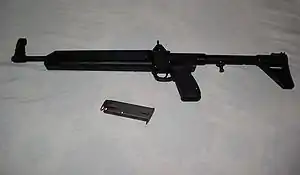 In March, he also purchased a new Kel-Tec 9mm Sub Rifle 2000 (a carbine hybrid of a pistol and a long gun with a folding stock, hand grip, and a rifle barrel) in Connecticut for $400.[39][78][91][92]