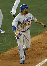 The Dodgers re-signed outfielder Juan Rivera to a one-year contract with a 2013 option.[16] They filled two of their open spots in rapid succession on November 15 by signing second baseman Mark Ellis to a two-year contract[17] and backup catcher Matt Treanor to a one-year contract.[18] The Dodgers signed infielder Adam Kennedy to a one-year contract on December 1 to provide some infield depth[19] and they signed veteran starting pitcher Chris Capuano to a two-year contract on December 2 to fill the void left by Kuroda's departure.[20] They added to their bench on December 5 by signing veteran utility player Jerry Hairston, Jr. to a 2-year contract.[21] The Dodgers finished their rebuilding of the rotation on December 8 by signing Aaron Harang to a 2-year contract, with a vesting option.[22] The Dodgers chose to re-sign relief pitcher Mike MacDougal, agreeing to a one-year contract (including a 2013 option) with him on January 5.[23] They added another relief pitcher on February 3 by signing veteran Todd Coffey to a one-year contract.[24]