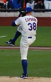 The Dodgers began their first road trip of the second half of the season in New York City against the Mets on July 20. Kemp and Luis Cruz each slugged two-run homers off Mets starter Johan Santana and the team held on for a 7–6 victory.[120] Juan Uribe, who had struggled in the first half of the season, broke out in the next game, with a homer, double, two walks, four RBI and three runs scored. Chris Capuano picked up his team leading 10th win in the 8–5 victory.[121] Matt Treanor's pinch hit two-run single in the top of the 12th inning led the Dodgers to an 8–3 victory over the Mets on July 22. The win completed the Dodgers first 3-game series sweep of the Mets in New York since 2002 and gave rookie Josh Wall the win. Wall was the first Dodger to pick up a win in relief in his first appearance since Tim Belcher in 1987.[122] Billingsley came off the disabled list to pitch six solid innings in the Dodgers 5–3 win over the St. Louis Cardinals on July 24. Luis Cruz's three-run homer was main offense in the game.[123] Kershaw struggled in the next game, allowing 8 earned runs, in the Dodgers 8–2 loss to the Cardinals that ended the five-game winning streak.[124] The Dodgers acquired Hanley Ramírez from the Miami Marlins in a trade on July 25 and Ramírez went 2-for-4 with a triple in his Dodgers debut against the Cardinals. It wasn't enough, however, as ex-Dodger Rafael Furcal hit a two-out single to left in the bottom of the 12th to give the Cardinals a 3–2 victory.[125] Chris Capuano turned in his worst start of the season in the finale against the Cardinals, as the Dodgers lost 7–4.[126] Ramírez hit his first home run as a Dodger in the opener of a key series against the division leading Giants. The two-run homer, in the top of the 10th inning was the difference in a 5–3 victory.[127] The Dodgers picked up another win against their rivals the next day as Chad Billingsley pitched 713 scoreless innings while allowing only 4 hits and Matt Kemp went 4 for 5 with two doubles and a home run in the 10–0 rout.[128] Kershaw pitched a five-hit complete-game shutout to complete the Dodgers sweep of the Giants, 4–0, and move them back into a tie for first place in the division.[129]
