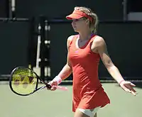 Wozniacki began the year as the world no. 1; she lost her top ranking after the Australian Open after losing in the quarterfinals to Kim Clijsters 3-6, 6-7(4–7).[4] She did not reach a final until the e-Boks Open, where she was the two-time defending champion but lost to Angelique Kerber 4–6, 4–6.[5] At the French Open, she lost to Kaia Kanepi 1-6, 7-6(7–3), 3-6.[6] At Wimbledon, she was upset by Tamira Paszek 7-5, 6-7(4–7), 4-6 in the first round.[7] At the US Open, after reaching the semifinals the previous year, she lost in the first round 2-6, 2-6, which dropped her ranking out of the top 10 for the first time since 2009.[8] She won her first title of the year at KDB Korea Open, defeating Kaia Kanepi 6-1, 6-0.[9] A few weeks later, she continued her good form and won the title at Kremlin Cup, claiming victory over Samantha Stosur 6–2, 4–6, 7–5, coming back from 1–4 in the final set.[10] She is making her debut to the event.