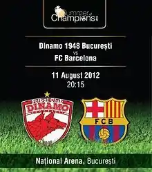 The 2012 Summer of Champions' Cup took place in Bucharest, Romania on August 11, 2012. It was organized by Thiess Holding in association with German marketing agency Sportfive being played at Arena Națională.[1] The Cup was contested between Spanish giants Barcelona and Romanian side Dinamo București.