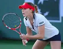 Vesnina made her breakthrough year in 2013. She won her first title after six former runners-up at the Moorilla Hobart International, defeating German Mona Barthel in the final 6–3, 6–4. This also gave Vesnina entry into the tournament of champions.[31] She then won her second title at the Aegon International a Premier event defeating Jamie Hampton 6–2, 6–1.[32] At the slam, the Russian reached the fourth round of the Australian Open and the first round of the French Open losing to Victoria Azarenka in both occasions 1–6, 1–6, and 1–6, 4–6, respectively.[33] The Russian then fell in the second rounds of Wimbledon and US Open to Sabine Lisicki 3–6, 1–6 and Karin Knapp 1–6, 4–6, respectively.[34] She also won French Open with Ekaterina Makarova.[35] She opted to play at the Tournament of Champions rather than the Fed Cup final.[36] She is making her debut to the event.