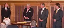 Buffalo County Republican Party candidate event in November 2013. From left to right: Shane Osborn, Sid Dinsdale, Bart McLeay and Ben Sasse.