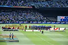 Australia and England lining up for the national anthems before the start of their match