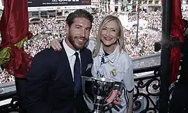 ![]() Sergio Ramos (left) and former President of the Community of Madrid, Cristina Cifuentes (right), with the La Liga trophy | ||||