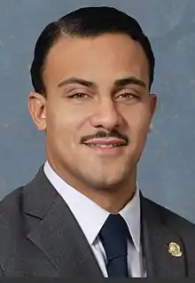 Virgil Smith, Jr., a former member of the Michigan House of Representatives was elected to represent Michigan's 4th Senate District in 2010 and 2014. Smith was arrested on May 10, 2015, for allegedly shooting at his ex-wife's SUV, riddling it with bullets and totaling it and was charged with multiple felonies.[2] Two days later, Smith was removed from all of his committee posts, his leadership post and removed from the Senate Democratic caucus.[3] On February 11, 2016, Smith agreed to plead guilty to malicious destruction of personal property $20,000 or more. Per his plea agreement, Smith will serve 10 months in the Wayne County Jail, resign from the state Senate and serve five years of probation where he will not be allowed to hold public office.[4] At his March 14, 2016, sentencing, Wayne County Circuit Court Judge Lawrence Talon sentenced Smith but said it would be illegal for him to require Smith resign from office or not hold office during his probation. Wayne County Prosecutor Kym Worthy said if Smith does not resign, her office would rescind Smith's plea agreement.[5] At a hearing on March 28, 2016, Talon refused a request from the Wayne County Prosecutor's Office to rescind Smith's plea agreement and take the case to trial, seeing as he had yet resigned his Senate seat. Immediately after the hearing, Smith was taken into custody to begin serving his 10-month jail sentence.[6] On March 31, 2016, Smith submitted his resignation to Michigan Senate Majority Leader Arlan Meekhof, effective April 12, 2016.[7]