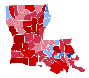 | Rapides | 32.23% | 18,322 | 64.77% | 36,816 | 3.00% | 1,706 | 56,844 |