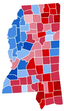 Mississippi has not voted Democratic since 1976. Since that time, Republicans have dominated the state's political elections, and so Trump was widely expected to win the state. Indeed, Trump carried the state with 57.86% of the vote, while Clinton received 40.06%.[2] Trump's 17.80% margin of victory was a 6.30% increase over the 11.50% margin of victory by which Republican nominee Mitt Romney won the state over Barack Obama in 2012. This also marked the first time since 1988 that Madison County voted more Democratic than the state as a whole.