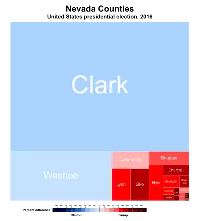 Hillary Clinton won the state over nationwide winner Donald Trump, marking the third presidential election in a row that Nevada has voted Democratic. Most counties in the state of Nevada are rural, and voted heavily for Trump. As a whole, the rural counties outside of Las Vegas and Reno gave Donald Trump a 66-27 margin. However, Clinton won the state's two most populous counties, Clark County and Washoe County, which contain about 85% of the state's population, and thus won the state's electoral votes. Compared to 2012, Clinton's margin of victory was narrower in these two counties and statewide.