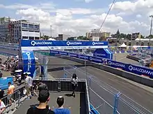 On September 21, 2016, officials announced the New York City ePrix would be held on the 1.210 mi (1.947 km) long Brooklyn Street Circuit in the Brooklyn neighborhood of Red Hook.[11][12][13][14] Senior figures supported the race with mayor Bill de Blasio calling Red Hook the place where is "no better home for the ePrix",[15][16] and the Fédération Internationale de l'Automobile (FIA) president Jean Todt said bringing the series to the city was "an amazing achievement in itself".[14][11][12] The event was confirmed one week later as part of Formula E's 2016–17 schedule by the FIA World Motor Sports Council as a double header round.[17] They were the ninth and tenth single-seater electric car races of the season, and were held on July 15 and 16, 2017.[17][18] It was the first FIA-sanctioned open-wheel motor sport round to be held in New York City,[14] and its first motor race since 1896.[19] The New York City ePrix was the third city to hold a Formula E race in the United States, following the Miami ePrix in 2015 and the Long Beach ePrix in 2015 and 2016.[20] The press expected the races to be attended by about 18,000 to 40,000 spectators.[21][22][23]