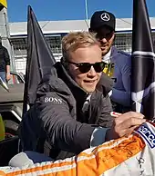 Heidfeld allowed teammate Rosenqvist back through to second place on lap 48.[67] Despite an oversteer in the race's final laps, Bird opened up a healthy advantage and crossed the start/finish line after 49 laps to earn his second victory of the season, his second in succession in New York City, and the fifth of his career.[69][73] He was the first driver to win both races of a double header weekend since Prost at the 2016 London ePrix.[74] Gasly caught the Mahindras of Rosenqvist and Heidfeld on the final lap, and all three drivers concertinaed through the final turn.[68] While challenging Heidfeld for third, Gasly carried too much speed entering the final corner and drifted into a trackside wall. He hurled a detachable barrier on the circuit, which no other driver hit.[67][71] Rosenqvist took second, with Heidfeld narrowly ahead of Gasly's damaged car. Di Grassi was fifth, Prost sixth, Dillmann seventh and Vergne eighth. Frijns's additional electrical energy allowed him to pass four cars on the final lap and took ninth. D'Ambrosio rounded out the top ten. Carroll, Sarrazin, Duval, Turvey, Félix da Costa and Piquet were the final finishers.[72] There was one lead change during the race; two drivers reached the front of the field. Bird led once for a total of 29 laps, out of 49.[4]