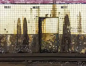 After a particularly bad round of delays in May 2017, the MTA devised a "six-point plan" to reduce subway delays.[40] It planned to hasten the delivery of new R211 cars; perform testing on boarding and alighting patterns at stations; post emergency medical technicians at key stations to treat sick passengers; double the frequency of the monthly track-defect detection tests; reduce bottlenecks at junctions; and reorganize the leadership hierarchy.[40][41][42][43] The plan would cost $20 million[42] and be implemented at 21 stations as a trial: nineteen stations on the heavily used IND Eighth Avenue Line between 125th Street and Fulton Street, as well as the 149th Street–Grand Concourse and Third Avenue–138th Street stations in the Bronx.[43][44] These locations were chosen since they were the source of frequent bottlenecks. On the Eighth Avenue Line especially, there are an average of 25 subway-car breakdowns per month, with the average such delay lasting 19 minutes.[41][42][44] The EMTs would be posted in five Eighth Avenue Line stations: 125th Street, 59th Street, 14th Street, West Fourth Street, and Fulton Street. There would also be an increased police presence.[42][44] The improved boarding and alighting patterns might include color-coded platforms and subway cars, as well as additional signage.[42][44] Finally, there would be a new chairman position to be split off of the existing CEO position.[41][44] Transit commentators viewed the plan positively, regarding the plan as a small step toward increasing the subway's reliability.[43]
