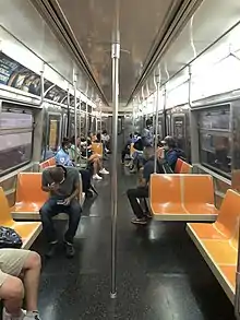 In October 2017, as part of the action plan, a hundred R160 subway cars on the E train were retrofitted to provide extra capacity of 8 to 10 passengers per car,[58][59] and some older R46 cars were also similarly refurbished.[60] Additionally, officials started piloting a new fare system compatible with the LIRR and Metro-North's eTix electronic tickets,[61] and several unspecified L train cars were being retrofitted with seats that folded up during rush hours.[60] Officials also changed all announcements containing "ladies and gentlemen" and replaced them with the more general terms "passengers", "riders", and "everyone", using gender-neutral terms ostensibly to improve passenger service.[62][63]
