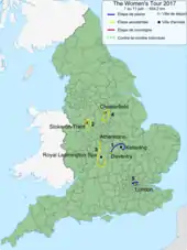 The 2017 Ovo Energy Women's Tour[2] was the fourth staging of The Women's Tour, a women's cycling stage race held in the United Kingdom. It ran from 7 to 11 June 2017,[3] as part of the 2017 UCI Women's World Tour.