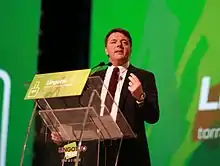 In early 2017, in opposition to Renzi's policies, some left-wing Democrats led by Bersani, Massimo D'Alema and Roberto Speranza launched, along with SI splinters, the Democratic and Progressive Movement (MDP).[28][29] Contextually, the NCD was transformed into Popular Alternative (AP). In April Renzi was re-elected secretary of the PD and thus the party's candidate for Prime Minister,[30] defeating Minister of Justice Andrea Orlando and Governor of Apulia Michele Emiliano.[31][32]
