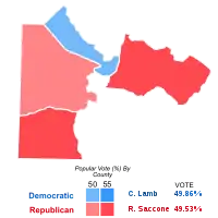 A special election for Pennsylvania's 18th congressional district was held on March 13, 2018, following the resignation of Republican Representative Tim Murphy.[1] Murphy, who held the seat since January 3, 2003, declared his intent to resign on October 5, 2017, and vacated his seat on October 21 that year. Democrat Conor Lamb defeated Republican Rick Saccone 49.86% to 49.53%. Saccone conceded the race eight days after the election.[2]