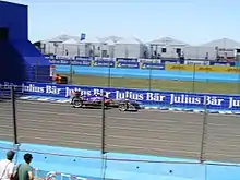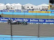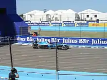 Piquet lost positions to Filippi, Rosenqvist and Evans as he was placed wide at the final chicane and Vergne completed the first lap with di Grassi following closely in second. On the second lap, Bird attacked Lotterer into the turn eight and nine hairpin but the latter blocked his path.[39] Soon after, Heidfeid stopped at the side of the track with a technical system error that shut down his car after leaving the first chicane.[3][40] Race control offered Heidfeld a small amount of time to restart his car but could not do so while his teammate Rosenqvist overtook Filippi for 12th on the third lap. Meanwhile, Buemi out-braked Bird to pass him for sixth at the turn eight and nine chicane. Buemi slowed to stop him running too deep and prevented Bird from re-passing him.[39] The safety car was deployed on lap four to allow officials to move Heidfeld's car and two drivers made overtakes.[35][41][42] Buemi passed Lotterer and Engel likewise overtook Bird but both drivers were not penalised.[39] Vergne led at the lap-six restart with di Grassi second. The pair gradually began pulling away from Lynn.[37][38] Piquet fell to 20th when his car developed drive train problems due to him hitting a wall earlier in the race.[33][37]