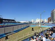 The circuit underwent three cosmetic changes after the 2015 race.[12] All bar one of the flexible bollards that were situated around the track in the last two Punta del Este races were removed by officials from the world governing body of motorsport, the Fédération Internationale de l'Automobile (FIA), and the "sausage" kerbing at the entry of the four chicanes was dismantled. However, additional TecPro barriers were erected to improve safety around the track. These changes prompted officials to establish a specific area for drivers to stop in should they miss the turning point for the chicanes before rejoining the track during all sessions.[n 1][12] The alterations received a mixed reception. Piquet spoke his belief that it would assist drivers attacking the track's high-speed sections.[12] José María López (Dragon) agreed that the kerbing could be negotiated without any major issues and António Félix da Costa (Andretti) praised the "fast and dangerous" nature of the circuit that the changes created.[13] However, the Audi pair of Lucas di Grassi and Daniel Abt called for the further adjustment of the kerbs as they feared the possibility of an accident occurring.[13]