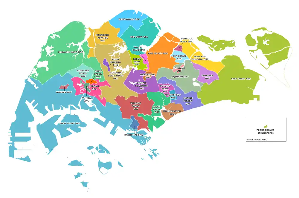 The Electoral Boundaries Review Committee is made up of senior civil servants and charged with adjusting the boundaries of electoral divisions prior to an election. The government officially claims this as necessary to ensure minority participation in Parliament amidst demographic changes while ensuring an equitable number of voters represented per MP, though critics have raised allegations of gerrymandering to disadvantage the opposition.[46][47][48][49] As of 2015, there were 16 GRCs and 13 SMCs. Prime Minister Lee convened the committee on 1 August 2019 with instructions to reduce the size of GRCs and increase the number of SMCs.[50][51] The exact date of formation was revealed only when Pritam Singh asked Trade and Industry Minister Chan Chun Sing in a written reply in Parliament.[52]