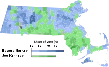 Markey's margin of victory of 10.8% was attributed to his unexpected strength among progressives and younger voters.[11][12] Kennedy's loss marked the first time a member of the Kennedy family had lost an election in Massachusetts.[13][14]