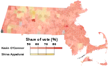 The 2020 United States Senate election in Massachusetts was held on November 3, 2020, to elect a member of the United States Senate to represent the Commonwealth of Massachusetts, concurrently with the 2020 U.S. presidential election, as well as elections to the United States Senate in other states, elections to the United States House of Representatives and various state and local elections. On September 1, incumbent Senator Ed Markey defeated U.S. Representative Joe Kennedy III in a competitive primary for the Democratic nomination and Kevin O'Connor defeated Shiva Ayyadurai for the Republican nomination. Markey went on to win the general election with 66.2% of the vote, and was thus re-elected to a second full term in a landslide.