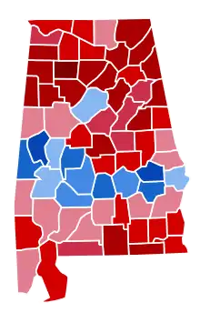 Alabama was one of seventeen states where Trump received less percentage of the vote than he did in the 2016 presidential election.[lower-alpha 1] This election also marked the first time since 1992 that Alabama and neighboring Georgia did not vote for the same presidential candidate.