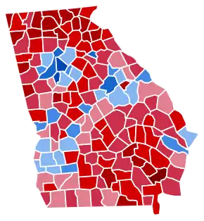 Due to the close margins in the initial election results, Georgia Secretary of State Brad Raffensperger announced on November 11 that a full audit by hand would be conducted.[4] The audit was completed on November 18,[5][6] and Biden was confirmed to be the winner on November 19.[7] Biden became the first Democrat to carry the state since Bill Clinton in 1992,[8] as well as the first Democrat to win a statewide election in Georgia since 2006.[9] Additionally, Biden became the first Democrat to carry a state in the Deep South since Clinton carried Louisiana in 1996. This is also the first time since 1992 that Georgia voted more Democratic than neighboring Florida and the first time since 2000 that it voted more Democratic than also-neighboring North Carolina. It was also the first time since 1860 that Laurens County and Monroe County did not vote for the statewide winner.[10] Georgia was one of sixteen states where President Trump received a smaller percentage of the vote than he did in the 2016 election.[lower-alpha 1]