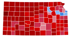 Although Trump won the state, Biden's 41.53 percent vote share represented the highest for a Democratic presidential nominee since 2008 — among Biden's best statewide increases of the election. His 14.65-point defeat represented the first time since 1916 that Kansas voted more Democratic than neighboring Missouri, where his margin of defeat was 16.54 points.