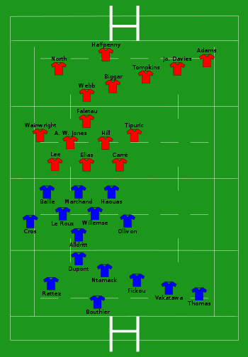 | Try: Baille 13' c Dupont (2) 31' c, 34' c Ollivon 66' c Thomas 73' c Con: Ntamack (5/5) 14', 32', 35', 67', 74' Pen: Ntamack (1/1) 48' |