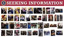 The FBI distributed a photo of the person who they believe planted the devices and offered a reward of up to $50,000 for information;[243] by the end of the month, they doubled the amount of the promised reward.[240][244] Sund told The Washington Post on January 10 that he suspected the pipe bombs were intentionally placed to draw police away from the Capitol;[173] Representative Tim Ryan (D–OH) echoed the sentiment in a virtual news conference on January 11, who said "we do believe there was some level of coordination ... because of the pipe bombs ... that immediately drew attention away from the breach that was happening".[245][246]
