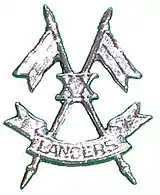 The uniform of the 20th Lancers was dark blue with scarlet facings. Its badge consisted of crossed silver lances bearing pennons, with a crown at the intersection above "XX" and a scroll below. In 1937, the 20th Lancers became the training regiment of the 3rd Indian Cavalry Group at Lucknow. It was converted into a training centre in 1940, and transferred to India after Partition of India and Pakistan.[2][4]