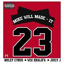 "23" is a song by American record producer Mike Will Made It, featuring American singer Miley Cyrus, and American rappers Wiz Khalifa and Juicy J; released on September 10, 2013 by Interscope Records. The song was written and produced by Mike Will Made It, with additional songwriting provided by Juicy J, Khalifa, Pierre Ramon Slaughter, and Rock City. "23" is set to a midtempo beat and lyrically references Air Jordan sneakers and recreational drug use.