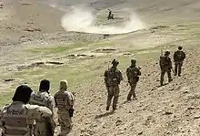 A 300-strong Special Operations Task Group (SOTG) was subsequently deployed to support the Reconstruction Taskforce in April 2007, including a commando company group, elements of the SASR, and an integral combat service support team.[51][52] In the latter part of 2008 the commando company conducted a disruption operation in Helmand province as part of Operation Eagle's Summit, which was a major coalition operation conducted in support of the transport and installation of an additional turbine for the Kajaki Dam hydroelectric facility.[53] In March and April 2009, SOTG killed 80 Taliban fighters in a major four-week operation in Helmand Province, without suffering any casualties.[54] Further operations undertaken include the Battle of Gizab in April 2010, and the Shah Wali Kot Offensive in June 2010, which resulted in heavy insurgent casualties.[55][56] The bulk of SOTG was withdrawn from Afghanistan in late 2013 as part of a drawdown of Australian forces, although some special forces remained after this date as part of the small Australian force maintained in the country.[57] The Regiment lost 12 personnel killed while deployed to Afghanistan, along with one killed during a pre-deployment exercise.[2][58][59]