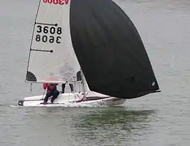 ![]() A V3000 dinghy using both gennaker and trapeze | |