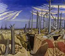 The 31st Division was not committed to the Third Ypres Offensive, which culminated in the dreadful Battle of Passchendaele, possibly because it was not considered to have recovered from its ordeal on the Somme a year before.[25] By the beginning of 1918 the BEF was suffering a severe manpower crisis: brigades were reorganised on a three-battalion basis in February, with the surplus men being drafted to bring other units up to strength. In the 31st Division, however, this process was even more severe, with the whole of the 94th Brigade disappearing, to be replaced temporarily by the 4th Guards Brigade, and later by a reformed 94th Brigade composed of Yeomanry units recalled from Palestine.[6][26][27][28]