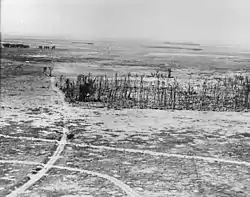 In 8 April 1917, the division left the Ancre and moved to the Arras sector for the Arras Offensive. After a period of training and trench-holding, the division moved into assembly trenches opposite Oppy during the night of 2/3 May, under shellfire. The British creeping barrage started at 03.45 and the 92nd and 93rd Brigades set off, in the dark and mist, into severe machine gun fire from Oppy Wood. 92 Brigade was held up in No man's land and suffered severe casualties. 2nd Lieutenant Jack Harrison of the 11th East Yorks was awarded a posthumous VC.[20][21][22]