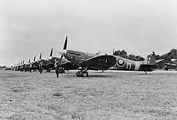 ![]() Spitfires of No. 350 (Belgian) Squadron at RAF Kenley, 1942. | |