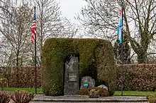 The 35th Division arrived at Le Havre, France, on 11 May 1918. The 35th served first, a brigade at a time, in the Vosges mountains between 30 June and 13 August. The whole division served in the Gerardmer sector, Alsace, 14 August to 1 September; Meuse-Argonne, 21 to 30 September; Sommedieu sector, 15 October, to 6 November. Men of the division spent ninety-two days in quiet sectors and five in active; advanced twelve and one half kilometres against resistance, captured 781 prisoners, and lost 1,067 killed and 6,216 wounded.[6] The 35th Division had as an officer Captain Harry Truman, 33rd President of the United States, who commanded Battery D of the 129th Field Artillery Regiment.[7]