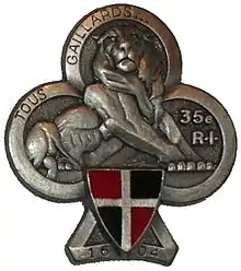 35th Infantry Regiment (35e régiment d'infanterie) is an infantry regiment of the French Army. Its origins date back to the formation of the régiment de Nemond in 1604 by a member of the gentry from Lorraine whose surname was Némond. During World War I it was nicknamed As de Trèfle (Ace of Clubs). It is now based at the garrison in Belfort.