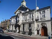 The Metropolitan Borough of Deptford set up a recruiting committee in December 1914, and the Mayor, Councillor William Wayland, announced at a council meeting on 18 May 1915 that he had been approached by Kitchener with a proposal for recruiting an infantry battalion or artillery brigade, which the council endorsed. Next day the official War Office (WO) authorisation was issued to the Mayor and Borough of Deptford to raise a brigade[lower-alpha 1] of the Royal Field Artillery (RFA), to be numbered CLXXIV (174th). A recruiting office was set up in Deptford Town Hall and the local response was extremely good: 200 men had enlisted by 27 May. By August the borough had raised the whole artillery for an infantry division, including three more RFA brigades (CLXXIX (179th Bde), CLXXXIV (184th), and CLXXVII Howitzer (186th (H) Bde)), the 137th Heavy Battery of the Royal Garrison Artillery, and the Divisional Ammunition Column (DAC), with a total of 2500 men recruited from Deptford, Lee Green, Brockley, New Cross and neighbouring Greenwich.[5][6][7][8][9][10][11][12][13][lower-alpha 2]