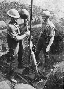 The field artillery of the British Expeditionary Force (BEF) was undergoing reorganisation in the light of experience so far in the war. On 21 March the division was ordered to form a brigade of three medium trench mortar batteries (TMBs) under a Divisional Trench Mortar Officer (DTMO). In 39th Division the men were provided by the RFA gun brigades and DAC; X/39, Y/39 and Z/39 Medium TMBs were each equipped with four 2-inch medium mortars.[5][10][17] On 20 May the BACs were absorbed by the DAC and on the same day the field brigades were reorganised as three batteries of 18-pdrs and one of 4.5-inch howitzers:[5][10][15]