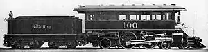 The first use of the 4-4-2 wheel arrangement for a tender locomotive was under an experimental double-firebox locomotive, built to the design of George Strong at the Hinkley Locomotive Works in 1888. The locomotive was not successful and was scrapped soon afterwards. The wheel arrangement was named after the second North American 4-4-2 tender locomotive class, built by the Baldwin Locomotive Works in 1894 for use on the Atlantic City line of the Philadelphia and Reading Railway.[4]